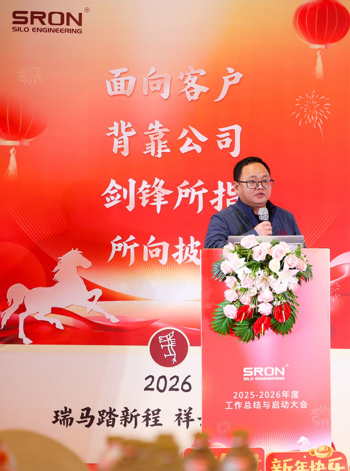 Председатель Вэнь Пэн подчеркнул, что эти достижения — результат мудрости и упорного труда всех сотрудников SRON, а также доказательство дальновидности и правильности стратегии компании. Глядя вперёд на 2026 год, он призвал весь коллектив продолжать придерживаться основных ценностей «достижение успеха клиента, технологическое лидерство, человеко-ориентированность, ценностный подход, прагматизм и постоянное совершенствование», сосредоточиться вокруг стратегической линии «глобальный прорыв, технологическое лидерство, системное развитие» и всемерно продвигать следующие направления работы: углубление глобального присутствия, укрепление рыночных преимуществ; строгий контроль стандартов сдачи, усиление сквозного управления процессом реализации проектов; системное построение технологической лидерской системы, ядром которой являются интеллектуализация, цифровизация, экологичность и низкоуглеродность, постоянная оптимизация кадровой стратегии. Компания будет продвигать вышеуказанные меры через более оптимизированные механизмы и системы, неустанно стремясь превратить SRON в китайскую визитную карточку в области хранения и транспортировки массовых сыпучих грузов.