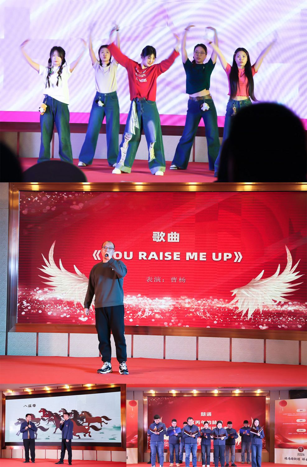 С наступлением ночи, когда зажглись праздничные огни, художественная программа SRON началась под радостные мелодии. Танцы, песни, сяншэн, декламация стихов — все номера были яркими и разнообразными. Чередовавшиеся с ними раздачи «дождика из красных конвертов» постоянно поднимали накал атмосферы. Искреннее исполнение на сцене и горячий отклик в зале, в ходе активного взаимодействия ощущались мощная сплочённость и единение большой семьи SRON.